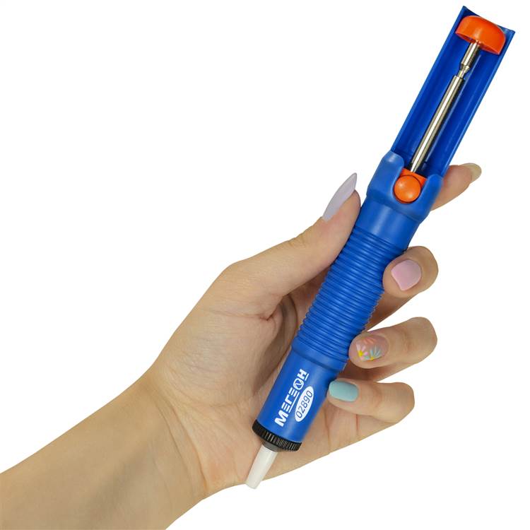МЕГЕОН 02890 – вакуумный оловоотсос, предназначенный удалять материал, применяемый при пайке радиокомпонентов.