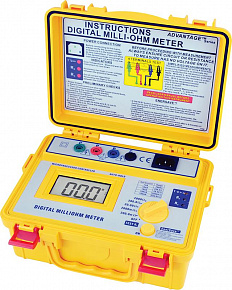 4-х проводная схема измерения сопротивления. Предупреждение об опасном напряжении в цепи. Портативное, пыле- и влагозащищенное исполнение. Аналог 4136, отличие - батарейное питание 12В