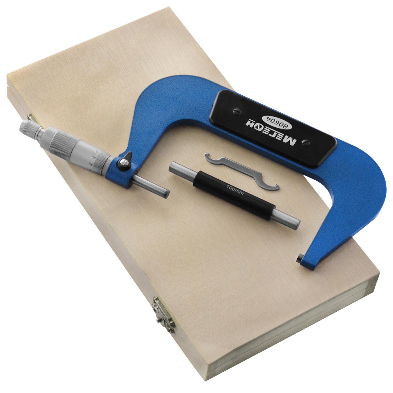 Микрометр с диапазоном измерений 100 ... 125 мм с погрешностью не более 0,01 миллиметра. Все элементы конструкции изготовлены из качественной инструментальной стали. Пятки губок термически обработаны. Барабан и трещотка имеют шероховатые поверхности с целью исключить проскальзывание пальцев при проведении замеров.