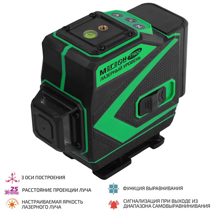 МЕГЕОН 77900 - это лазерный уровень- осепостроитель с тремя замкнутыми плоскостями.
