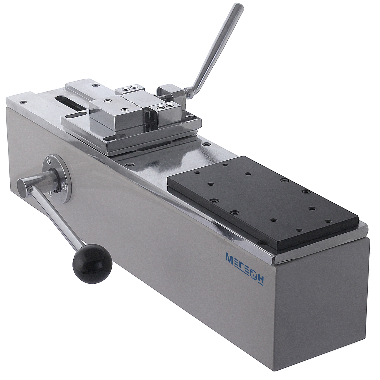 Горизонтальный испытательный стенд растяжения-сжатия с рычажным механизмом подачи суппорта. Механизм перемещения суппорта имеет простую и надёжную конструкцию, состоящую из термообработанной зубчатой рейки и шестерни. Основные узлы конструкции имеют антикоррозионное покрытие.